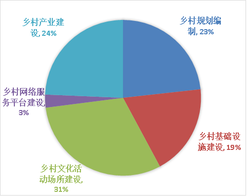 2017年,全省高职院校完成农村劳动力转移培训15015人次,比上年增加5326人次,农民创业培训15604人次,比上年增加3978人次;组织师生参与乡村规划编制、乡村基础设施建设、乡村文化活动场所建设、乡村网络服务平台建设、乡村产业建设,全年共完成相关建设项目740个(见图5-4),有254个乡镇受益。