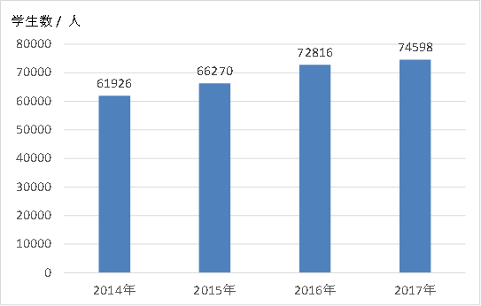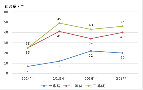 图1-4 2014-2017年学生在全国职业院校技能大赛中获奖情况