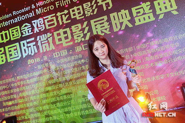 红网时刻3月29日讯(记者 肖轲)3月28日,中国金鸡百花电影节第三届国际微电影展映盛典在海口隆重举行。湖南艺术职业学院影视系教师王密、周晓军指导,2015级新闻采编专业学生李丹、包鹏程等同学创作的视频作品《一颗红糖的梦想》脱颖而出,摘得纪录片单元优秀作品奖。