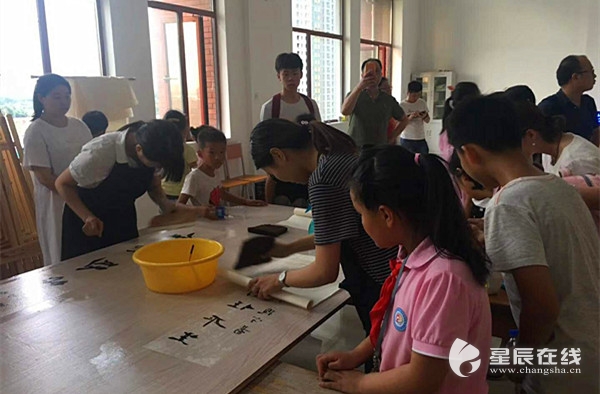 来自大同星沙二小3—6年级的小学生、老师和部分学生家长参加了本期活动。工作人员带领大家参观了陶瓷修复室、青铜器修复室,并一一详细介绍了修复工具、设备以及材料;在书画修复室,文物修护与保护班的学生们向大家演示了书画装裱托画心的过程;随后,大家了解了湖南地方剧种——花鼓戏的过去、现在和未来。参加活动的学生和家长们纷纷表示,本次活动特别有意义。一位家长说自己和孩子一起看了《我在故宫修文物》,刚巧湖南艺术职业学院有这样的活动,就赶紧带孩子来参加了,没想到在湖南本土也有文物修复专业,希望艺术职业学院今后多多举办这样的活动,传承传统文化。