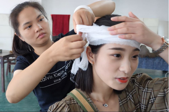 李老师在剧中扮演了徐解秀大姐一角,与其他演员不同的是,她既是演员又是该剧的指导老师,同时她还是戏剧影视表演专业的一名教师。每周除了排练任务外,还有4个班级的专业教学课程需要完成。为演好角色,她只能牺牲休息时间和节假日。她潜心研读剧本、分析揣摩人物角色心理,并指导参演学生。作为两个孩子的妈妈,她却是一名“狠心”的妈妈。她的小女儿刚满一岁,一面是工作,一面是孩子,在两难选择下,她毅然决然地选择了前者,将年幼的女儿和刚上一年级的儿子送给了年迈的公公婆婆照顾。