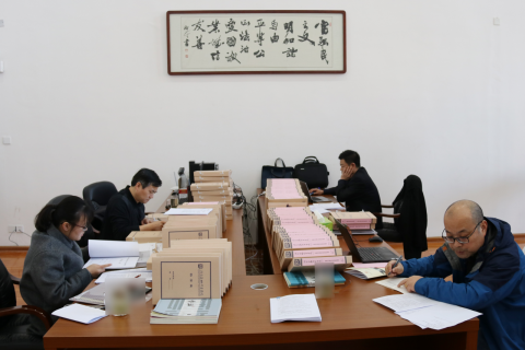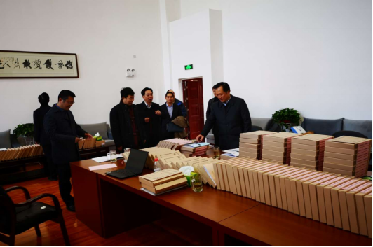 汇报会开始前,禹新荣在王章华、张勇等领导的陪同下,专程到雅艺楼204(学院文明高校创建办公室)查看学院文明创建自查自评材料。