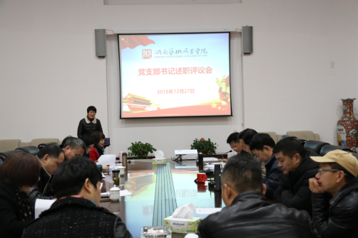 12月27日,我院党支部书记履行党建工作责任述职评议会在雅艺楼208会议室举行。院党委书记王章华,院长张勇,党委副书记、副院长余会春,纪委书记彭爱莲,副院长周文清,副院长杨向东,副院长刘家海出席会议。学院党委班子成员、各党支部书记、党员及群众代表参加了会议。会议由余会春主持。