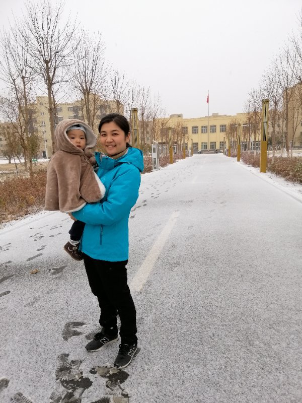 ▲张杭与一岁的儿子在吐鲁番职业技术学院