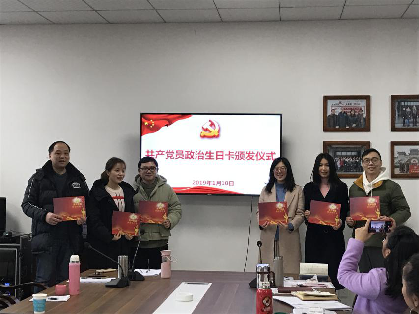 1月10日,文旅系党支部在臻艺楼510党员活动室召开大会,为支部的6位党员同志过“政治生日”,统一颁发“共产党员政治生日卡”。大会由党支部书记蒋平主持。