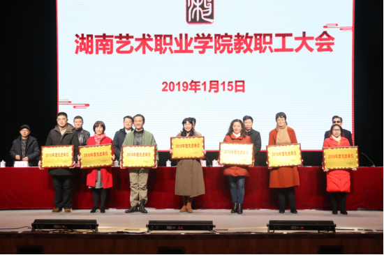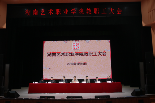 张勇全面总结了学院2018年度的工作。他指出,2018年是湖南艺术职业学院实现跨越发展的关键一年。这一年学院在省文化和旅游厅、省教育厅的坚强领导下,以建设湖南艺术学院为总揽,坚持整体搬迁与教育教学两手抓,领导班子团结有力,全院教职员工上下一心、攻坚克难,推动了全院各项工作迈上新台阶、再创新业绩:学院顺利完成三校区合一办学,获评“湖南省文明高等学校”和“平安校园”,软硬件建设同步完善,教职工收入显著提升,教学教改目标圆满完成。他从三个方面肯定了学院2018年度的工作:一是加强党的建设,凸显政治引领作用;二是规范管理谋大事、抓大事,不断打造办学核心竞争力;三是以文明创建为抓手,全面推进和谐、美丽、幸福新校园建设。
