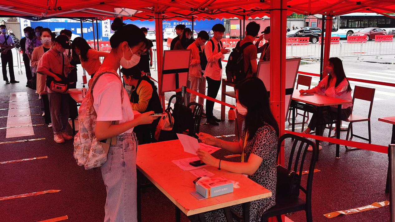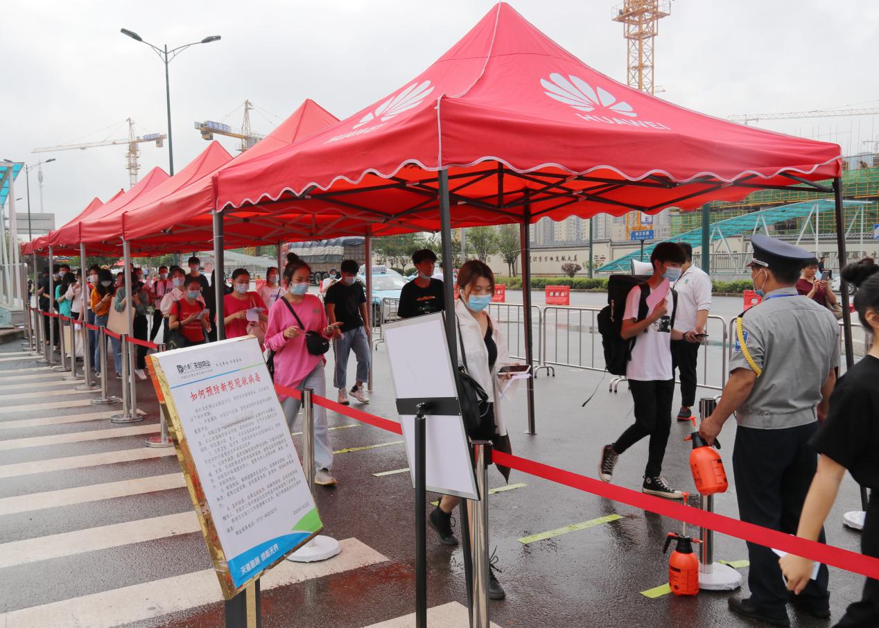 当天早上7时许,学院全体考务人员已经按照分工各就各位。因疫情防控要求,参加此次单招的考生只能在考试当日分批次进校。为加快入校速度同时保证人员安全,学院指定南门为考生进校通道,并专门设立4个入口分流人员,考生需要依次排队并保持间隔1米,逐一接受体温测查和健康码、身份证、准考证核验,确认无异常情况方可入校。