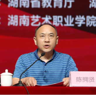 陈拥贤详细介绍了本次竞赛的基本情况、总体安排,并代表2020年湖南省职业院校技能竞赛组委会办公室,对湖南艺术职业学院的精心筹备,以及相关单位和专家、领导的大力支持表示衷心感谢。他指出,利用竞赛平台广泛开展的校企对话协作活动、技术技能人才供需见面会、现场招聘会等,对于促进全社会关注、关心、重视和支持职业教育,改善职业教育发展环境,推动产教深度融合和校企一体化育人,具有十分重要的意义。希望全体参赛选手本着重在参与、重在学习、重在交流、重在展示的心态,沉着冷静,赛出风格,赛出水平;希望各位裁判员忠于职守,廉洁自律,高度负责,做到公平、公正、客观、准确;希望广大工作人员坚守岗位,兢兢业业,确保竞赛安全、平稳、有序进行。