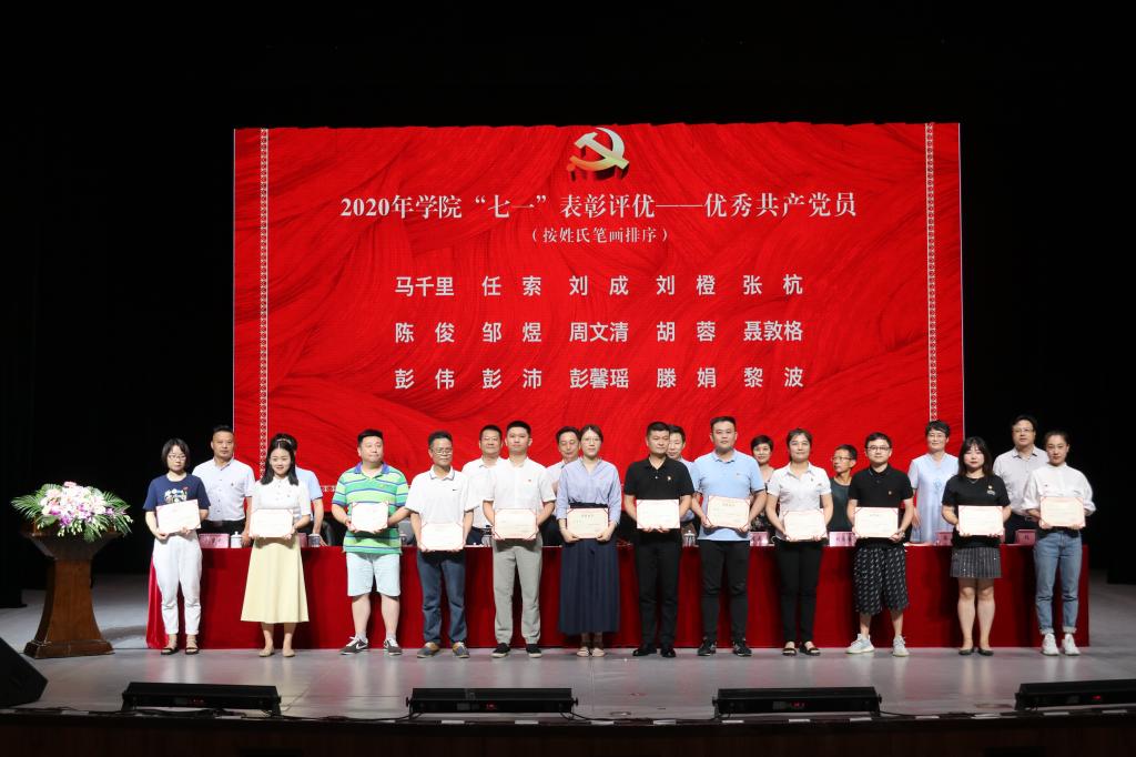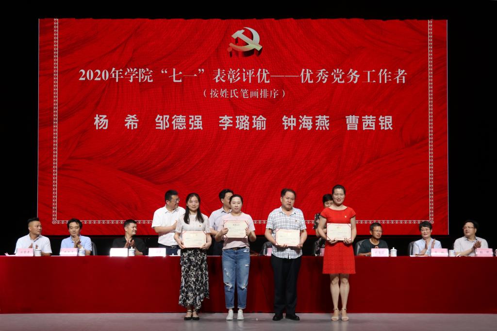 余会春同志宣读《关于表彰2020年学院先进党支部、优秀党务工作者、优秀共产党员的决定》,获得表彰的先进部门及先进个人依次上台领奖。