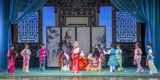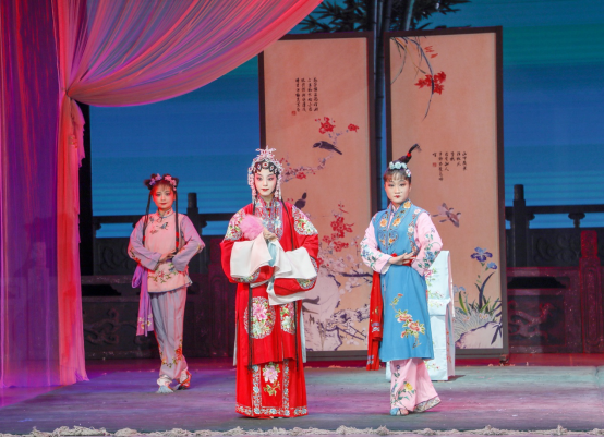 湘剧《拜月记》讲述了战乱之中王尚书之女瑞兰与父母失散,随后与秀才蒋世隆相遇相恋,私定终身;世隆走失的妹妹蒋瑞莲则在阴差阳错间成为王尚书夫人的义女。战乱平息后,瑞兰父女重逢,但王尚书嫌弃世隆贫寒,棒打鸳鸯,瑞兰与世隆只能拜月祈祷,期盼早日团聚。幸而世隆寒窗苦读高中状元,最终夫妻团聚、兄妹团圆。