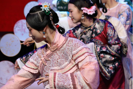 从春秋战国到秦汉,从魏晋南北朝到隋唐,从宋元明清到民国,服饰的变化呈现了社会经济与科技的进步以及大众审美的变迁;孔子、屈原、貂蝉、蔡文姬、杨贵妃……穿着当时各样服饰的历史名人重新“鲜活”于舞台,浸润岁月痕迹的表演将观众们带回那些衣袂飘飘的黄金时代。