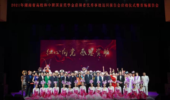 王瑰曙代表省教育厅、省委教育工委,对本次活动的顺利启动表示热烈祝贺,向报告团成员们表示亲切问候,向承办首场报告会的湖南艺术职业学院表示感谢。他指出,自2007年国家建立普通高校国家奖学金制度、2019年建立中等职业教育国家奖学金制度以来,我省先后有2万多名大学生和2000多名中职学生获此殊荣。从国家奖学金获得者中遴选代表在全省巡回演讲,具有丰富而深刻的现实意义:一是展示国家资助成效的需要。全国每年有数千万学生得到不同形式的国家资助,要通过不同途径宣传国家资助取得的巨大成效,充分彰显我国政治优势、制度优势,不断增强人民群众获得感、幸福感。二是弘扬社会主义核心价值观的需要。国家奖学金获得者是社会主义核心价值观的优秀践行者,宣传他们的优秀事迹,就是要弘扬正能量,引领新风尚。三是坚持榜样育人的需要。要发挥引领示范作用,激励广大在校学生向榜样看齐,奋发进取,努力成为合格的、优秀的社会主义建设者和接班人。他寄语广大学子:一是要执于信念。要以国家富强、人民幸福为己任,胸怀理想、志存高远、增长才干。二是要敢于奋斗。要用奋斗擦亮青春底色,用拼搏放飞人生理想。三是要善于学习。要从榜样身上汲取能量,激发动力,肩负起时代赋予的光荣使命。