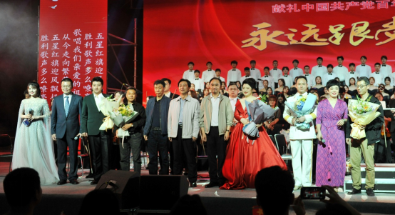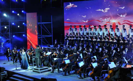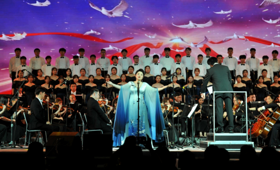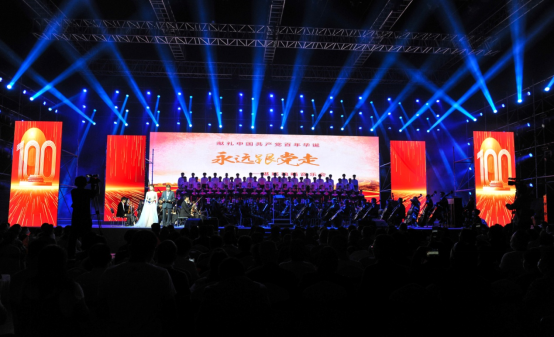 据悉,本次活动既是湖南艺术职业学院青年教师、怀化学院优秀毕业生、湖南师范大学音乐学院2021届硕士研究生谌瑶的独唱音乐会,也是创新党史学习教育形式、献礼建党百年的一次大型公益演出。匡勇胜、李建华、周晓峰、陈多峰、黄训国等业内知名艺术家应邀助阵,湖南广电知名主持人梅冬、李宇琪担任现场主持,湖南艺术职业学院交响乐团、蒲公英合唱团分别担纲伴奏与合唱。在严格做好防疫措施的基础上,音乐会现场高朋满座、妙音绕梁。