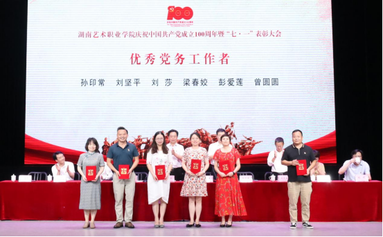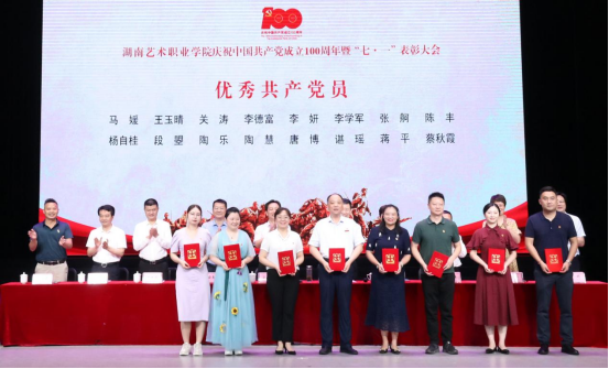 时值建党百年,7月1日上午,学院党委在实验剧场召开庆祝中国共产党成立100周年暨“七一”表彰大会。院党委书记王章华,院长张勇,党委副书记、副院长余会春,纪委书记彭爱莲,副院长周文清,副院长刘家海,副院长黄新平,党委委员、影视系党支部书记蒋玲,党委委员、戏剧系党支部书记刘坚平,院长助理兼财务处处长张野在主席台就座,全院党员同志参加了活动。活动由张勇主持。