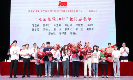 余会春同志宣读表彰决定,获得光荣在党50年纪念章,获评优秀共产党员、优秀党务工作者、党员先锋岗、先进党支部的代表同志依次上台领奖。