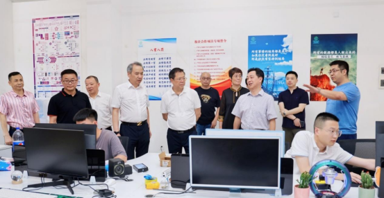 在学院影视系文化走廊,张严一行先后了解了影视系在中宣部、国家网信办获奖的纪录片、微电影的相关情况,现场考察了湖南宝宝秀文化传媒有限公司校企实训基地、安化县乡村振兴项目湖南谦益吉供应链管理服务有限公司校企实训基地。