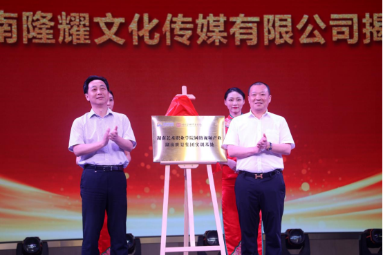 随后,宾主双方一同前往湖南世景集团,现场为湖南艺术职业学院网络视频产业世景实训基地暨湖南隆耀文化传媒有限公司揭牌。