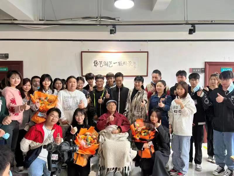 当天座谈结束后,周令钊先生一行徜徉在湖艺校园,实地观看了师生作品展览和相关教学实训场地,还专程来到他亲笔题写的“华艺湖艺 一脉相承”墨宝前留影,所到之处尽是欢声笑语,浓厚的文化氛围和优美的校园环境博得声声赞誉。