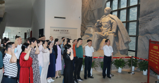 现场调研环节,学员们在国歌广场合唱国歌、重温入党誓词,在田汉艺术中心参观了田汉生平展、田汉故居,瞻仰了田汉铜像,并现场调研了园区深度合作资源。