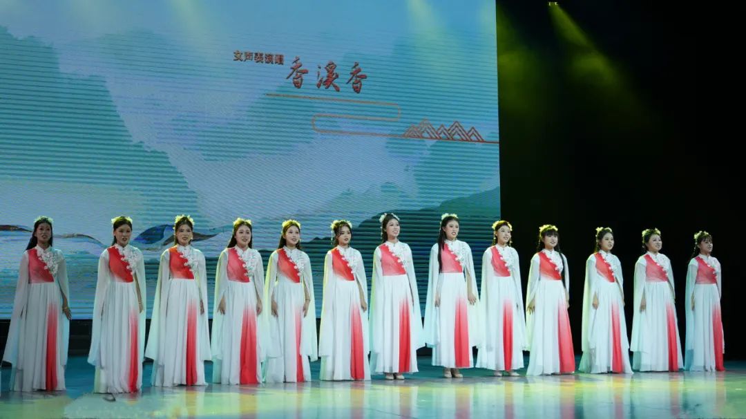 声乐演唱部分,有混声合唱、女声表演唱两种表演形式。其中混声合唱《一想到你啊》欢快轻松,女声表演唱《香溪香》极具鄂西北民歌特色,女声表演唱《太阳晒在山坡坡》深情歌颂精准扶贫、乡村振兴,旋律优美、主题鲜明。